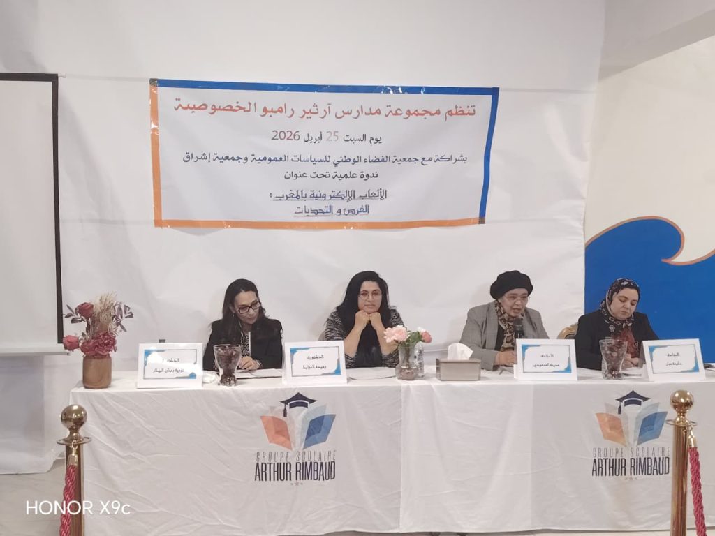 نظمت مجموعة مدارس آرثر رامبو الخصوصية، يومه (السبت) 25 أبريل 2026، بشراكة مع جمعية الفضاء الوطني للسياسات العمومية وجمعية إشراق، ندوة علمية تحت عنوان: “الألعاب الإلكترونية بالمغرب: الفرص والتحديات”، في إطار نقاش أكاديمي متزايد حول التحولات الرقمية وتأثيرها على النشء والمجتمع.