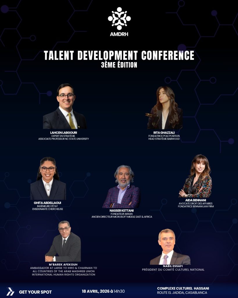 تحت شعار “منصة عالمية، أثر وطني: إعداد الكفاءات المغربية لأفق 2030 وما بعده”، تنظم الجمعية المغربية لتنمية الموارد البشرية (AMDRH) الدورة الثالثة من مؤتمر تطوير الكفاءات، وذلك يوم السبت 18 أبريل 2026 بالمركب الثقافي الحسني بالدار البيضاء.
