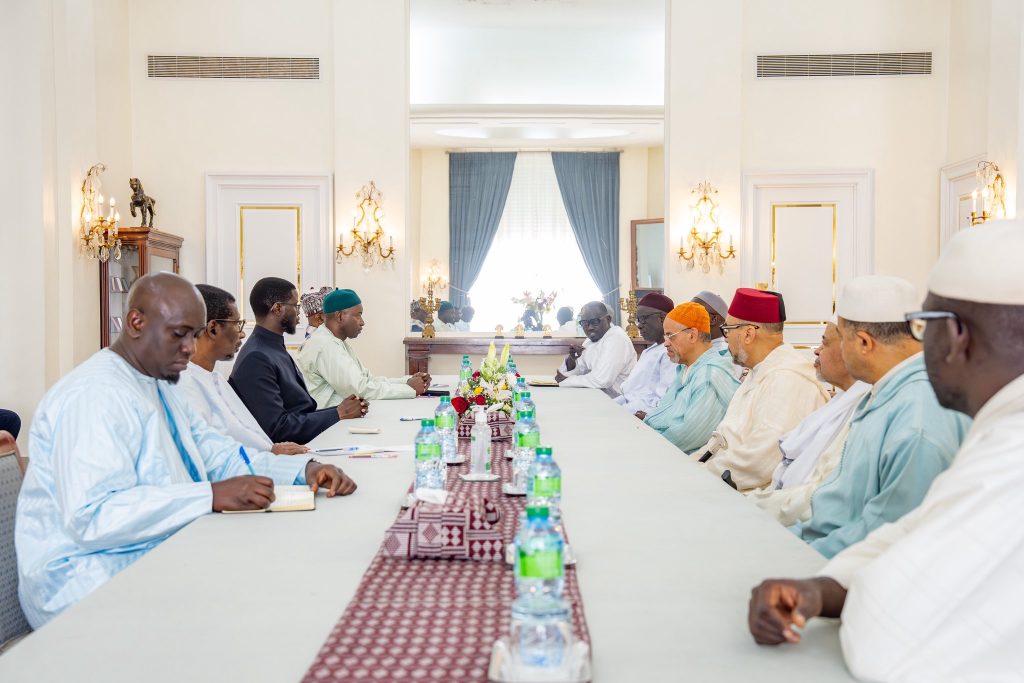 Le @PR_Diomaye a reçu le Khalif général de la Tidjaniya au Maroc, Sidi Mohamed El Kebir, à la tête d’une forte délégation. Les échanges ont porté sur la Hadaratoul Jummah nationale, initiée par Serigne Abdoul Aziz Al Amine, ainsi que sur les relations séculaires entre les 2 pays. pic.twitter.com/InfXMjYKNK