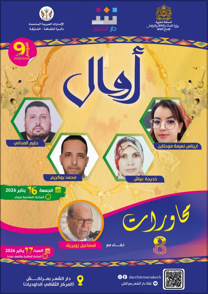 وتسعى دار الشعر والشعراء بمراكش من خلال برنامجي “أوال” و”محاورات” إلى تعزيز مكانة الشعر المغربي في أبعاده المتعددة، وفتح فضاء حوار وتلاقٍ بين أجيال وتجارب مختلفة، مع الاحتفاء بالمنجز الشعري الأمازيغي والفصيح على حد سواء، بما يعكس ثراء التنوع الثقافي والجغرافي في المغرب.