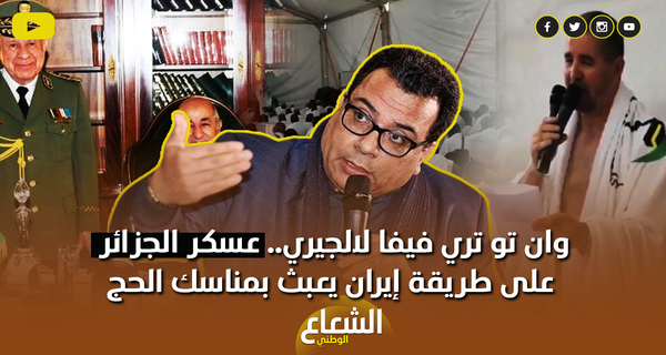 وان تو تري فيفا لالجيري.. عسكر الجزائر يعبث بمناسك الحج على الطريقة الإيرانية (فيديو) 16 يوليو 2022 - 10:37 ص يسلط الدكتور عبد الرحيم المنار اسليمي الضوء على تورط المخابرات العسكرية الجزائرية في العبث بمناسك الحج من قبل مجموعة من