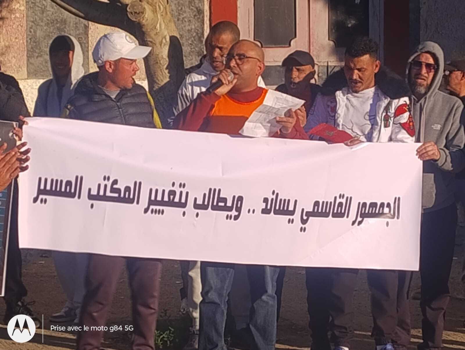 تصاعد غضب جماهير الاتحاد القاسمي ومطالب برحيل المكتب المسير 31 مارس 2026 - 11:40 ص خرج عدد من أنصار ومحبي الاتحاد الرياضي القاسمي لكرة القدم، مساء يوم الاثنين، في وقفة احتجاجية أمام مقر النادي، للتعبير