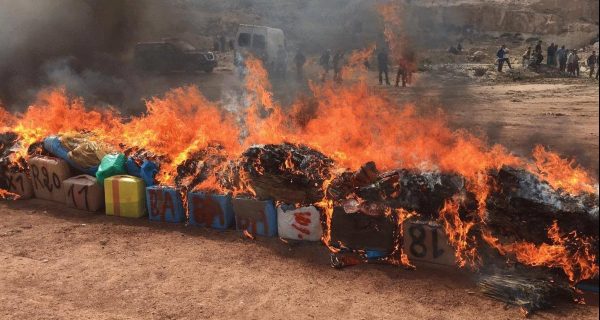 جرى، اليوم السبت بضواحي الداخلة، حرق وإتلاف كمية كبيرة من المخدرات، بينها 6.406,902 كيلوغرام من مخدر الشيرا، ومواد محظورة ومهربة