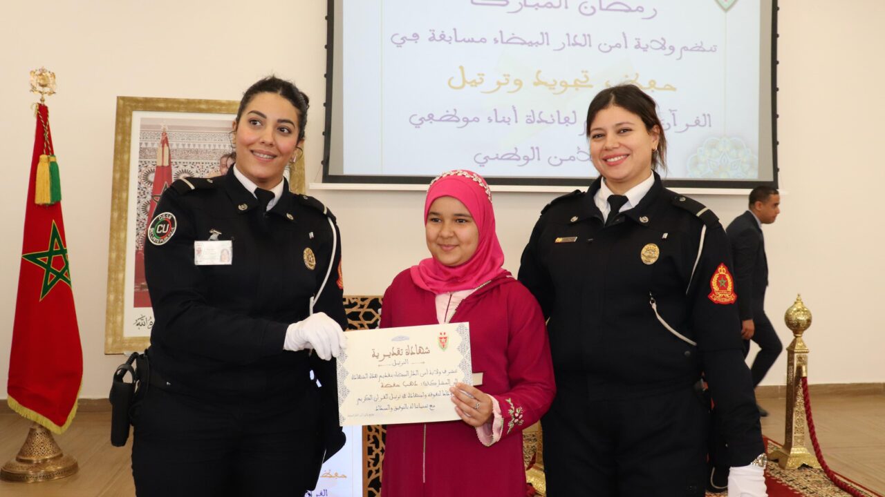 الطفلة فاطمة الزهراء اليومي تتوّج بالمركز الأول في المسابقة الوطنية الأولى لحفظ وتجويد القرآن الكريم بأبناء الأمن الوطني